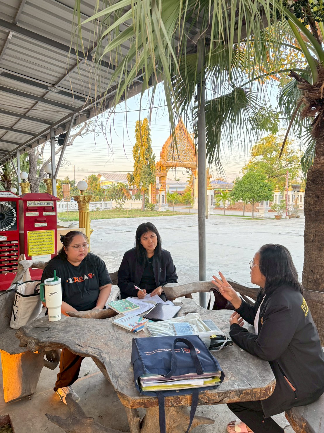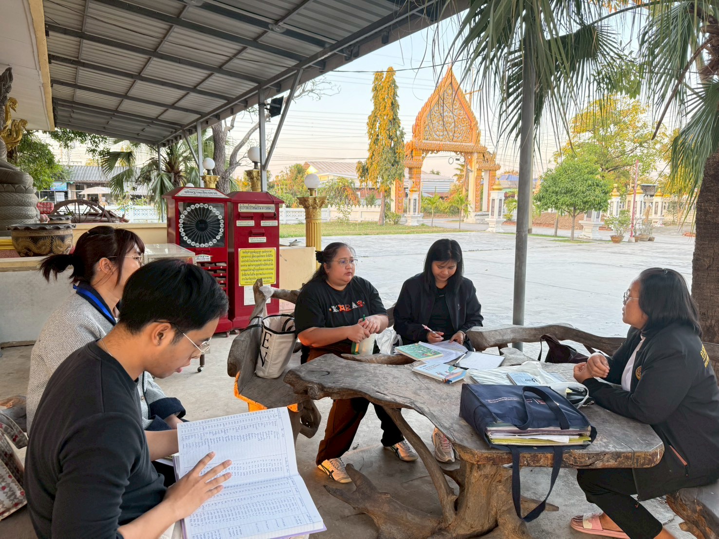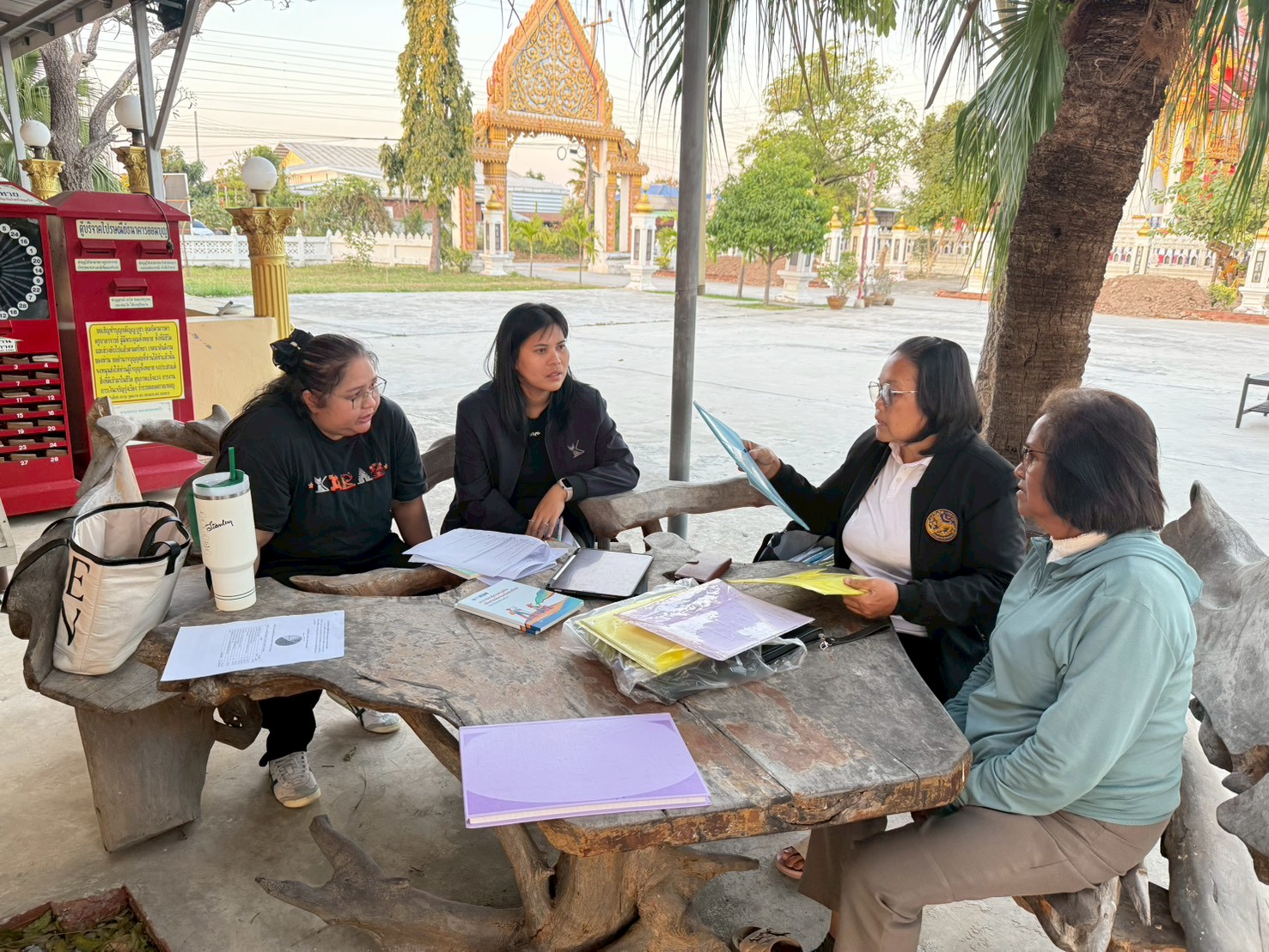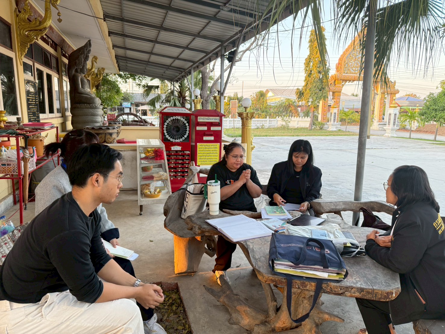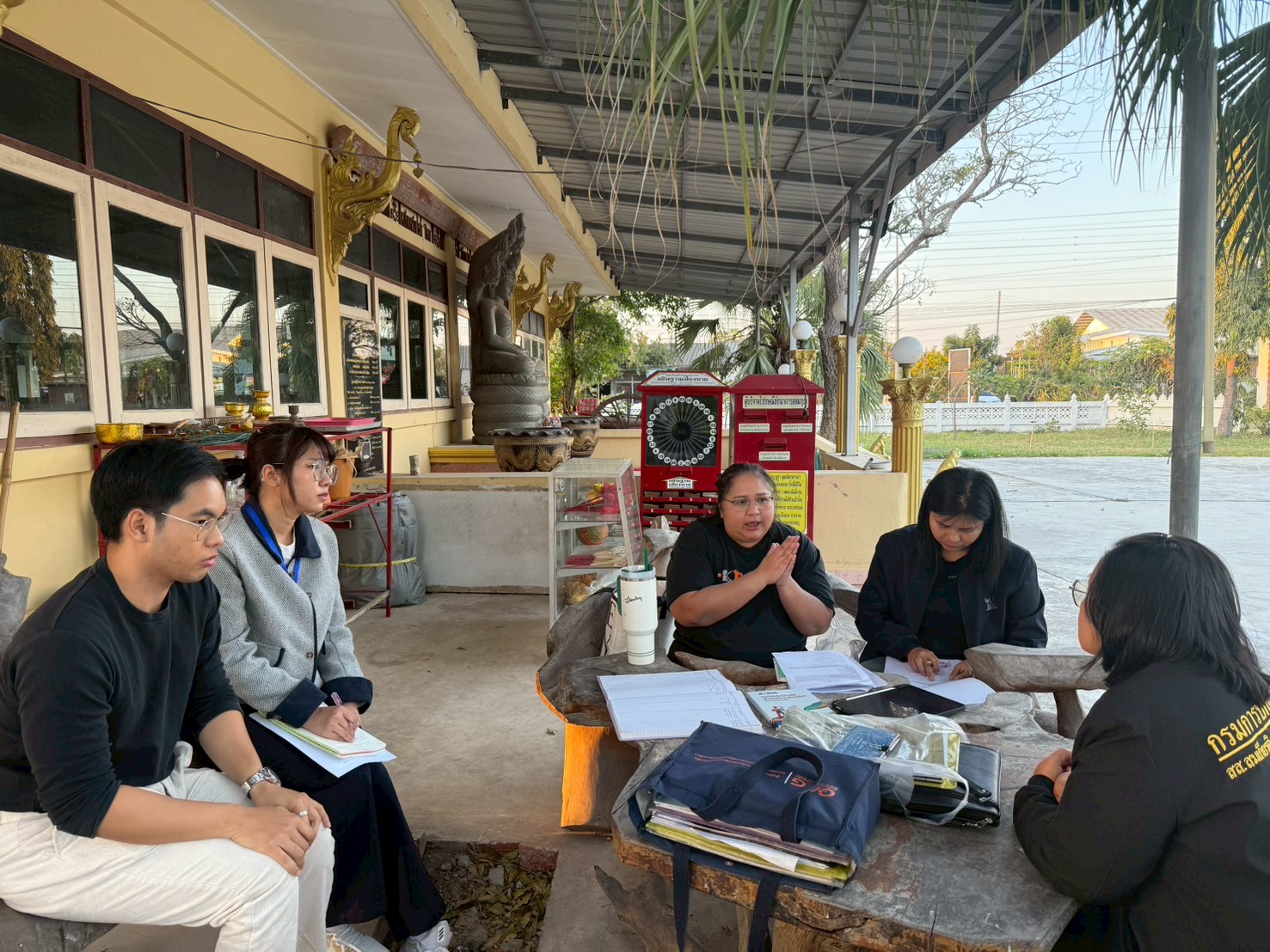 ในการลงพื้นที่ครั้งนี้ ได้มีการประชุมร่วมกับผู้ใหญ่บ้านและผู้ช่วยผู้ใหญ่บ้าน หมู่ที่ 12 บ้านเพิก ตำบลหลุมข้าว อำเภอโนนสูง เพื่อแลกเปลี่ยนข้อมูลเกี่ยวกับการดำเนินงานกองทุนหมู่บ้าน ระบบการให้กู้ยืมเงิน ระเบียบและเงื่อนไขการปล่อยกู้ การออมเงินของคนในชุมชน ตลอดจนสถานการณ์ทางเศรษฐกิจและภาระหนี้สินของครัวเรือน พร้อมร่วมกันวิเคราะห์และหาแนวทางการลดหนี้อย่างยั่งยืน