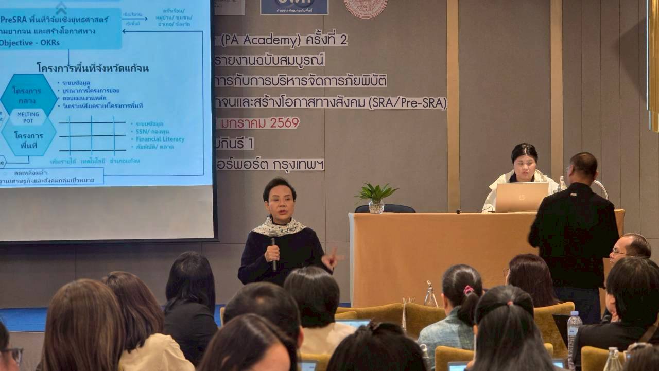 มหาวิทยาลัยราชภัฏนครราชสีมา นำโดย ผศ.ดร.กนกพร ฉิมพลี ผู้ช่วยอธิการบดีฝ่ายพัฒนาท้องถิ่น พร้อมด้วย คณาจารย์และคณะนักวิจัยโครงการการพัฒนาและยกระดับแพลตฟอร์มเพื่อการแก้ไขปัญหาความยากจน จังหวัดนครราชสีมา (ระยะที่ 2) เข้าร่วมการอบรมเชิงปฏิบัติการภายใต้หลักสูตร Poverty Alleviation Academy (PA Academy) ครั้งที่ 2 ซึ่งจัดขึ้นระหว่างวันที่ 24–25 มกราคม 2569 ณ โรงแรมอมารี ดอนเมือง แอร์พอร์ต กรุงเทพมหานคร เพื่อเสริมสร้างองค์ความรู้และยกระดับศักยภาพการดำเนินงานวิจัยเชิงพื้นที่ในการขจัดความยากจนและสร้างโอกาสทางสังคม